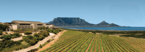 Os vinhedos, junto à Table Mountain e o mar